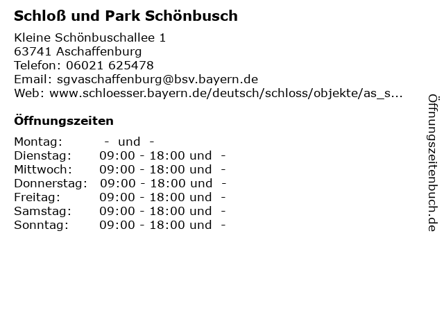 Branchen & Suchbegriffe zu Schloß und Park Schönbusch:besichtigung, park, schloss, schloß, schönbusch |