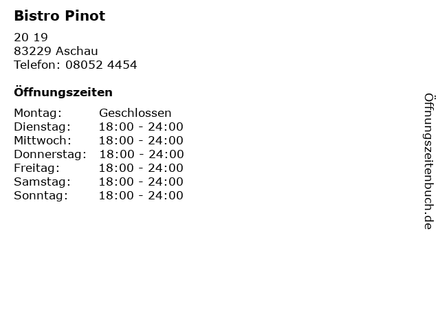 | Öffnungszeiten Bistro Pinot in Aschau anzeigen | |