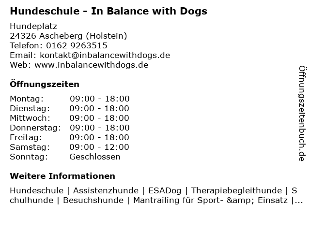 Branchen & Suchbegriffe zu Hundeschule - In Balance with Dogs:balance, dogs, hundeschule, with |