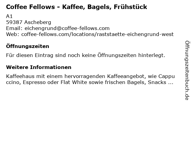 | Öffnungszeiten Coffee Fellows - Kaffee, Bagels, Frühstück in Ascheberg anzeigen | |