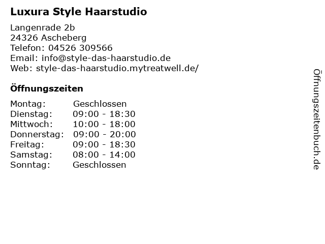 | Öffnungszeiten Luxura Style Haarstudio in Ascheberg anzeigen | |