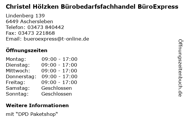 Branchen & Suchbegriffe zu Christel Hölzken Bürobedarfsfachhandel BüroExpress:büro, bürobedarf, bürobedarfsfachhandel, büroexpress, christel, express, hölzken, mit, paket verschicken, paketdienst, paketshop, paketshop“, schreibwaren, schulartikel, “dpd |