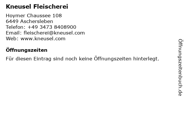 | Öffnungszeiten Kneusel Fleischerei in Aschersleben anzeigen | |
