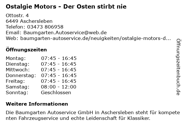 Branchen & Suchbegriffe zu Ostalgie Motors - Der Osten stirbt nie:autorestaurierung, autoteile und -zubehör, motors, nie, ostalgie, osten, stirbt |
