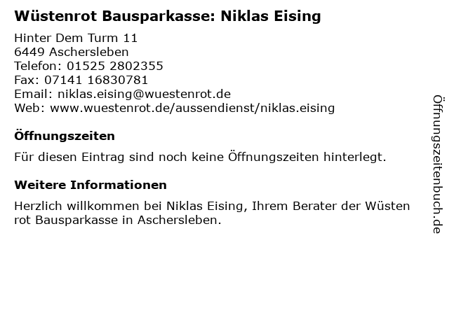 | Wüstenrot Bausparkasse: Niklas Eising anrufen | |