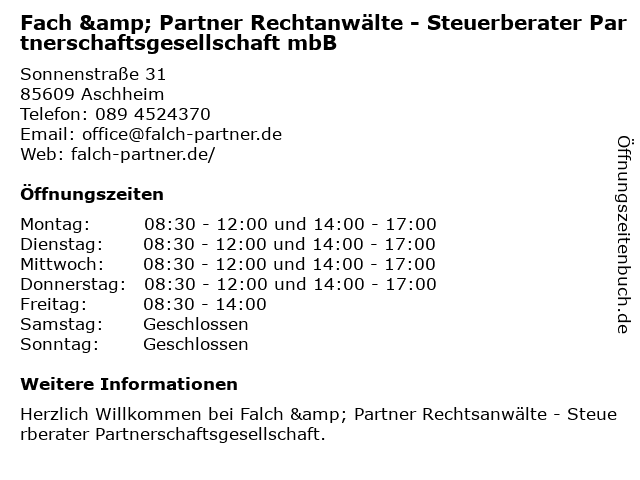 Branchen & Suchbegriffe zu Fach & Partner Rechtanwälte - Steuerberater Partnerschaftsgesellschaft mbB:fach, mbb, partner, partnerschaftsgesellschaft, rechtanwälte, schuldeneintreibungsdienste, steuerberater |