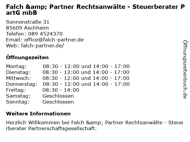 Branchen & Suchbegriffe zu Falch & Partner Rechtsanwälte - Steuerberater PartG mbB:falch, mbb, partg, partner, rechtsanwälte, steuerberater, steuerberatung |