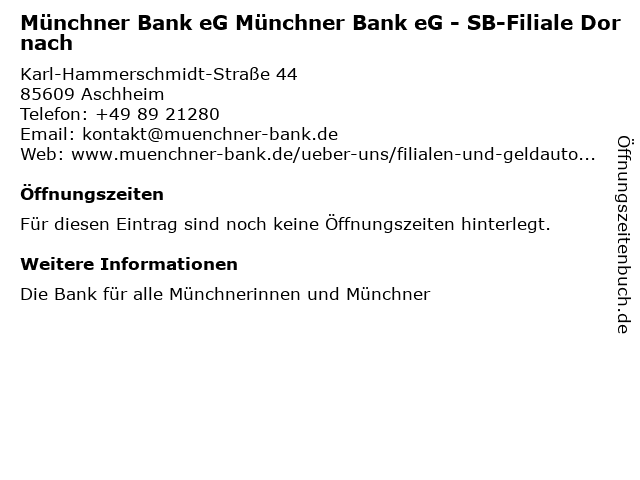 | Münchner Bank eG Münchner Bank eG - SB-Filiale Dornach anrufen | |