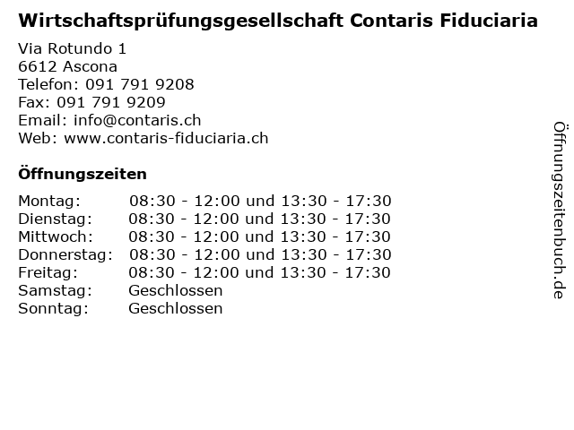 Branchen & Suchbegriffe zu Wirtschaftsprüfungsgesellschaft Contaris Fiduciaria:contaris, fiduciaria, steuerberatung, treuhandbüro, wirtschaftsberatung, wirtschaftsprüfungsgesellschaft |
