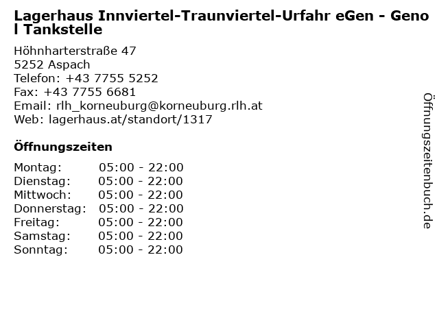 1 Lagerhaus Innviertel-Traunviertel-Urfahr eGen - Genol Tankstelle (Entfernung: 6,96 km) Edt 15, 4943 Gurten 2 Lagerhaus Innviertel-Traunviertel-Urfahr eGen - Genol Tankstelle (Entfernung: 13,85 km) Gewerbestraße 1, 4962 Mining 3 4 Lagerhaus Innviertel-Traunviertel-Urfahr eGen - Holzeinkauf (Entfernung: 0,00 km) Höhnharterstraße 47, 5252 Aspach 5 Lagerhaus Innviertel-Traunviertel-Urfahr eGen - Baustoffe (Entfernung: 13,85 km) Gewerbestraße 1, 4962 Mining 6 Lagerhaus Innviertel-Traunviertel-Urfahr eGen - Baustoffe (Entfernung: 14,02 km) Harlochnerstraße 1, 5230 Mattighofen |