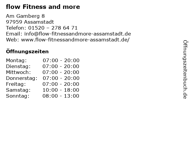 | Öffnungszeiten flow Fitness and more in Assamstadt anzeigen | |