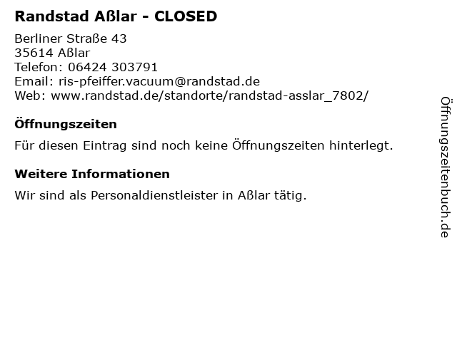 Öffnungszeiten Randstad Aßlar - CLOSED in Aßlar anzeigen | |