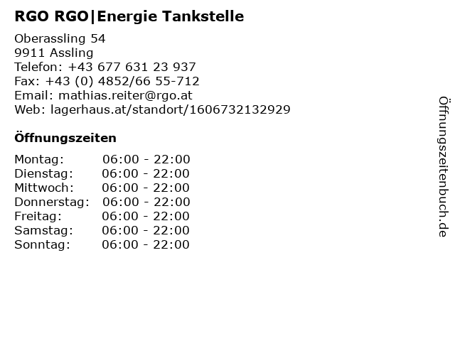 | Öffnungszeiten RGO RGO|Energie Tankstelle in Assling anzeigen | |