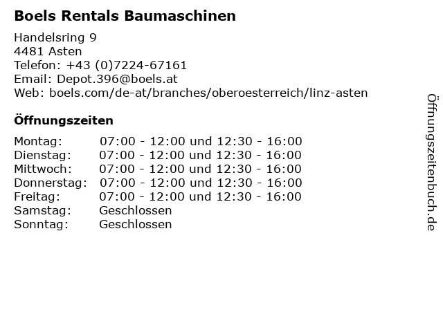| Öffnungszeiten Boels Rentals Baumaschinen in Asten anzeigen | |