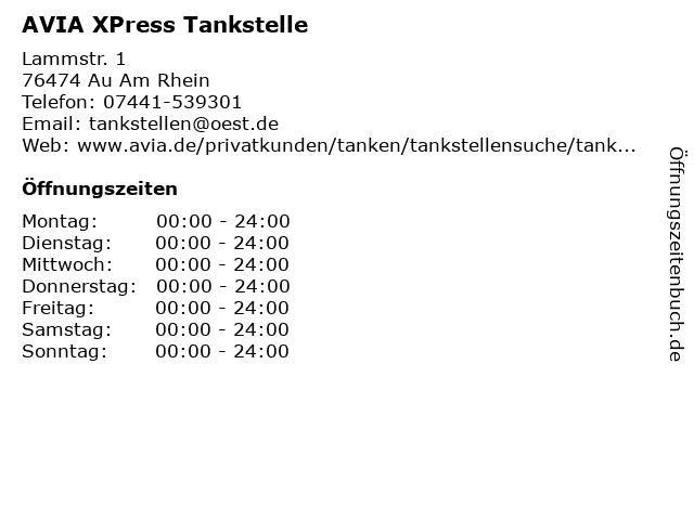 | Öffnungszeiten AVIA XPress Tankstelle in Au Am Rhein anzeigen | |