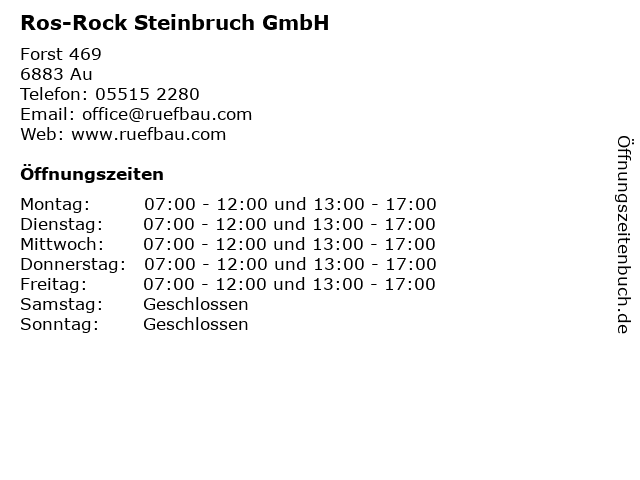 | Öffnungszeiten Ros-Rock Steinbruch GmbH in Au anzeigen | |