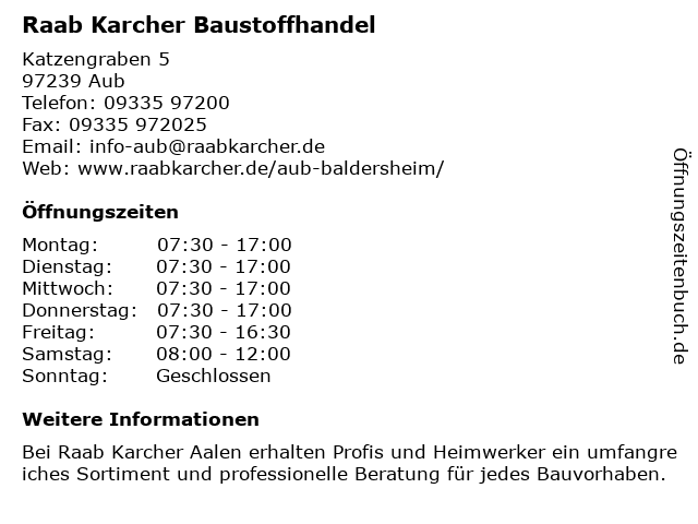 | Öffnungszeiten Raab Karcher Baustoffhandel in Aub anzeigen | |