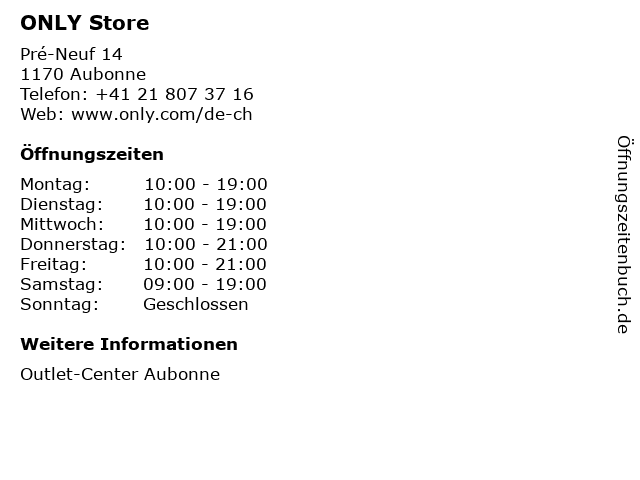 | Öffnungszeiten ONLY Store in Aubonne anzeigen | |