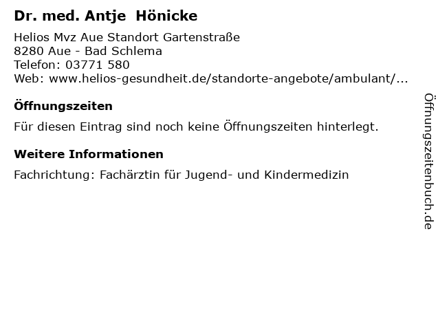 | Dr. med. Antje Hönicke anrufen | |
