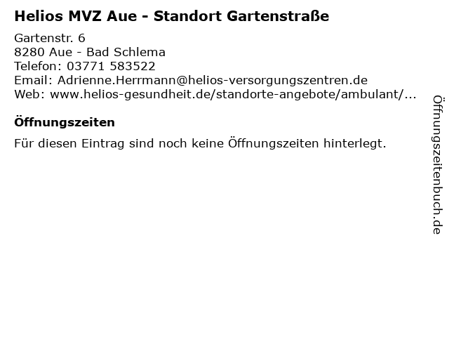 | Helios MVZ Aue - Standort Gartenstraße anrufen | |