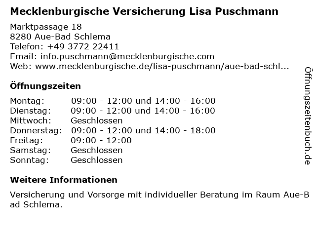2 Mecklenburgische Versicherung Barbara Rech (Entfernung: 1,91 km) Hartensteiner Straße 8, 08289 Schneeberg 5 Mecklenburgische Versicherung Bernd Stettinius (Entfernung: 2,78 km) Wettinerstraße 24, 08280 Aue-Bad Schlema 6 |