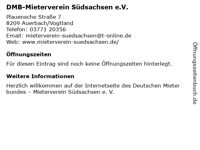 | DMB-Mieterverein Südsachsen e.V. anrufen | |