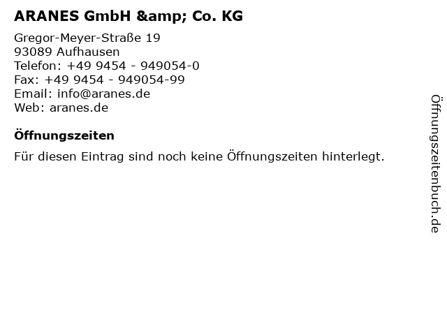 | Öffnungszeiten ARANES GmbH & Co. KG in Aufhausen anzeigen | |