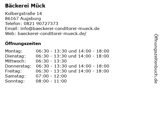 Öffnungszeiten Bäckerei Mück in Augsburg anzeigen | |
