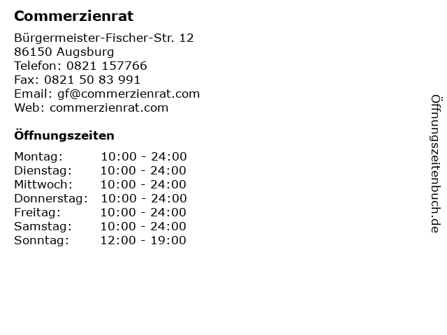 | Öffnungszeiten Commerzienrat in Augsburg anzeigen | |