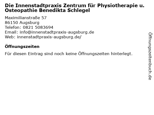 | Die Innenstadtpraxis Zentrum für Physiotherapie u. Osteopathie Benedikta Schlegel anrufen | |