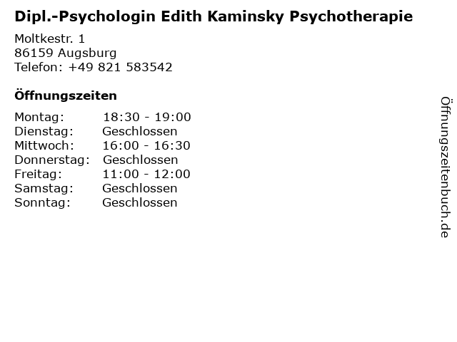 2 Görlitz G. Dipl.-Psychologin Psychologische Praxis (Entfernung: 1,02 km) Alpenstr. 33, 86159 Augsburg 6 |