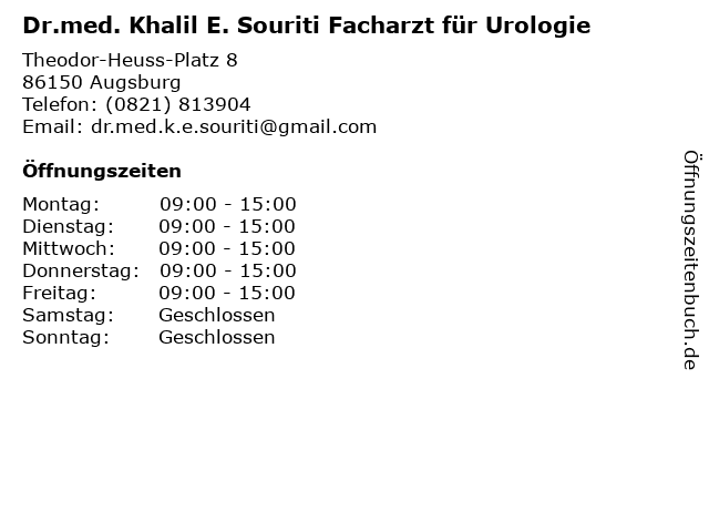 Branchen & Suchbegriffe zu Dr.med. Khalil E. Souriti Facharzt für Urologie:dr.med., e., facharzt, khalil, souriti, urologie |