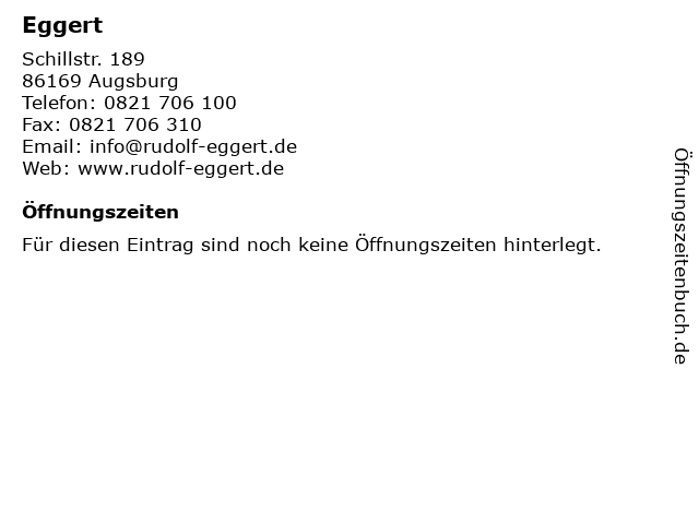 | Öffnungszeiten Eggert in Augsburg anzeigen | |