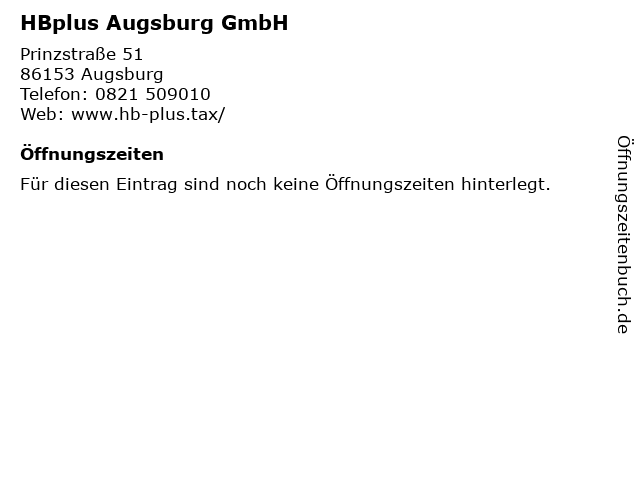 | Öffnungszeiten HBplus Augsburg GmbH in Augsburg anzeigen | |