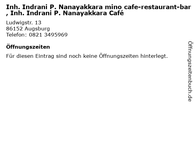 | Inh. Indrani P. Nanayakkara mino cafe-restaurant-bar, Inh. Indrani P. Nanayakkara Café anrufen | |