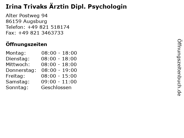 Branchen & Suchbegriffe zu Irina Trivaks Ärztin Dipl. Psychologin:arzt für psychiatrie und psychotherapie, dipl., irina, psychologin, trivaks, ärztin |