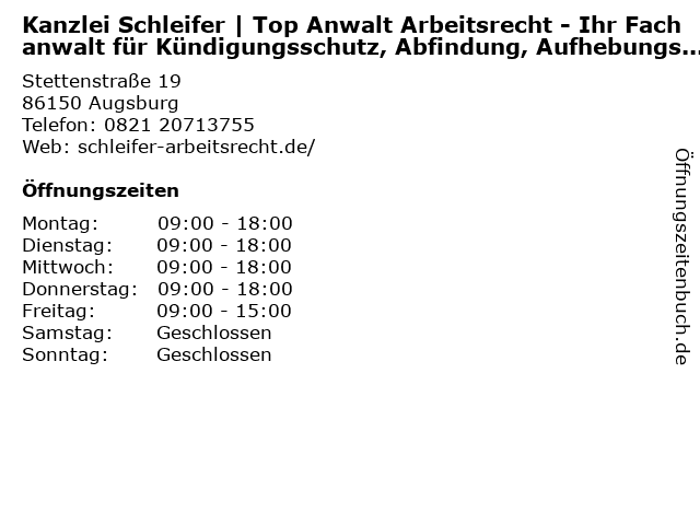Branchen & Suchbegriffe zu Kanzlei Schleifer | Top Anwalt Arbeitsrecht - Ihr Fachanwalt für Kündigungsschutz, Abfindung, Aufhebungsvertrag | Augsburg:abfindung, anwalt, arbeitsrecht, aufhebungsvertrag, fachanwalt, ihr, kanzlei, kündigungsschutz, schleifer, top |