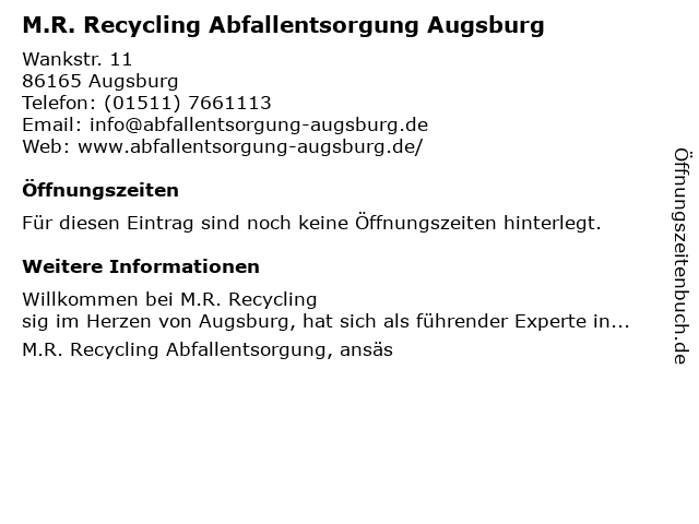 | M.R. Recycling Abfallentsorgung Augsburg anrufen | |