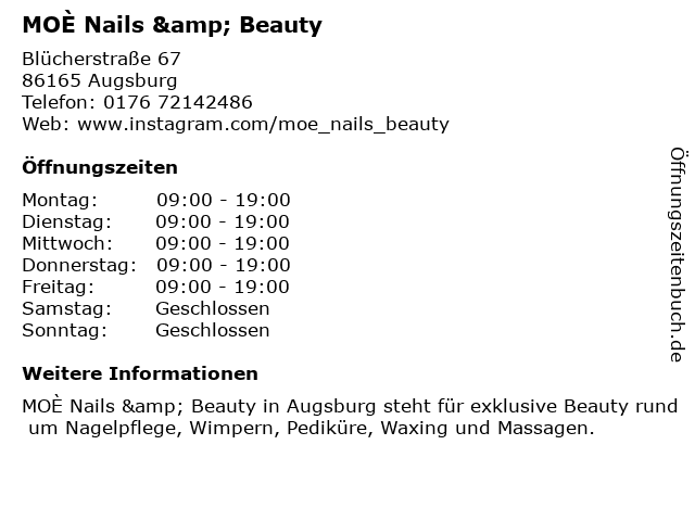 Öffnungszeiten MOÈ Nails & Beauty in Augsburg anzeigen | |