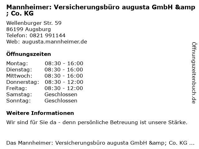 Branchen & Suchbegriffe zu Mannheimer: Versicherungsbüro augusta GmbH & Co. KG:augusta, mannheimer, versicherungsbüro |