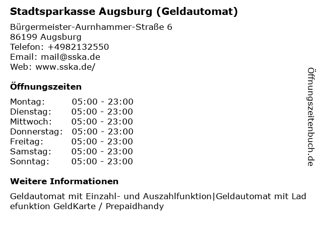 Branchen & Suchbegriffe zu Stadtsparkasse Augsburg (Geldautomat):geldautomat, stadtsparkasse |