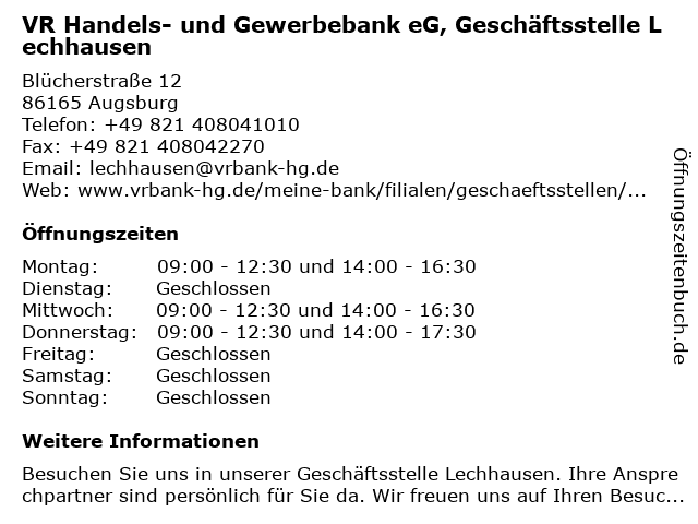 | 2 VR-Bank Handels-und Gewerbebank eG (Geldautomat) (Entfernung: 0,01 km) Blücherstr 12 1/3, 86165 Augsburg 3 5 VR-Bank Handels-und Gewerbebank eG (Geldautomat) (Entfernung: 5,59 km) Augsburger Straße 10, 86368 Gersthofen 6 VR-Bank Handels-und Gewerbebank eG (Geldautomat) (Entfernung: 9,53 km) Sebastianstr. 11, 86368 Gersthofen |