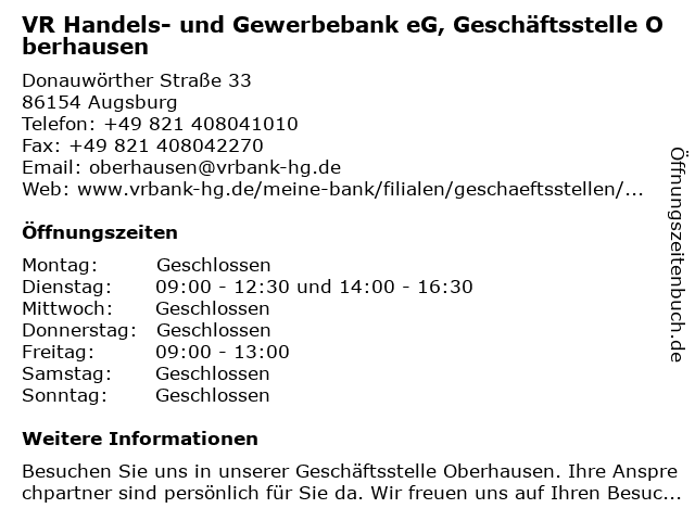 1 Geldautomat VR Handels- und Gewerbebank eG (Entfernung: 0,00 km) Donauwörther Straße 33, 86154 Augsburg 2 4 VR Bank Augsburg-Ostallgäu eG, Geschäftsstelle Augsburg-Lechhausen (Entfernung: 2,75 km) Blücherstraße 4, 86165 Augsburg 5 VR-Bank Handels-und Gewerbebank eG (Geldautomat) (Entfernung: 2,87 km) Blücherstr 12 1/3, 86165 Augsburg 6 |