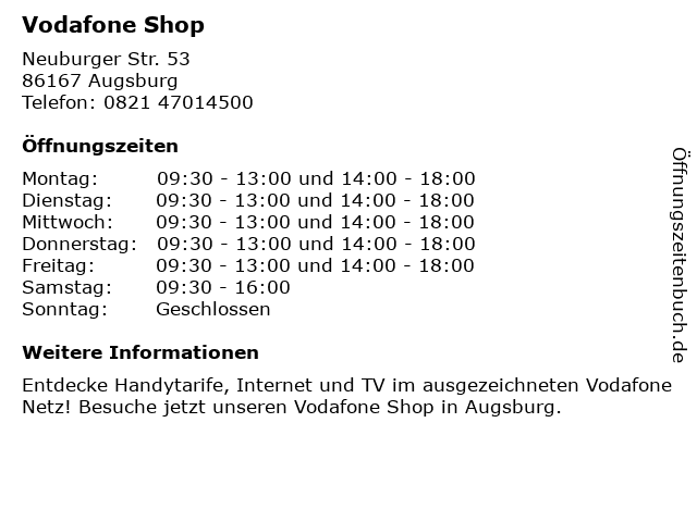 | Öffnungszeiten Vodafone Shop in Augsburg anzeigen | |