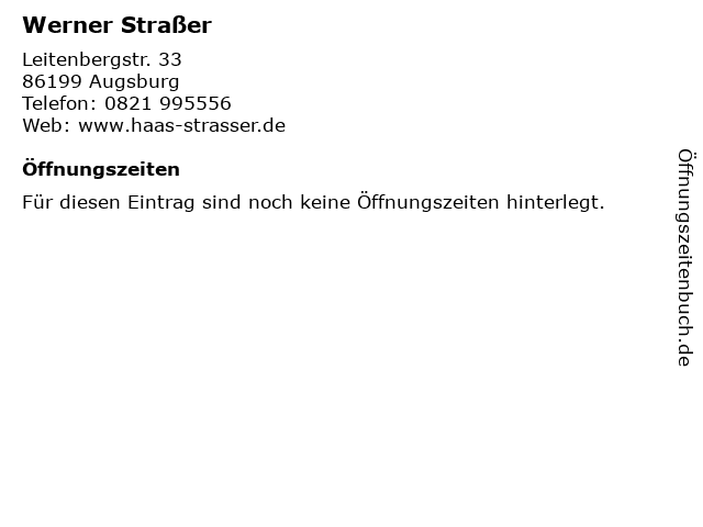 | Öffnungszeiten Werner Straßer in Augsburg anzeigen | |