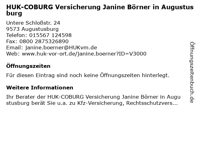 | HUK-COBURG Versicherung Janine Börner in Augustusburg anrufen | |
