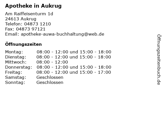 | Öffnungszeiten Apotheke in Aukrug in Aukrug anzeigen | |