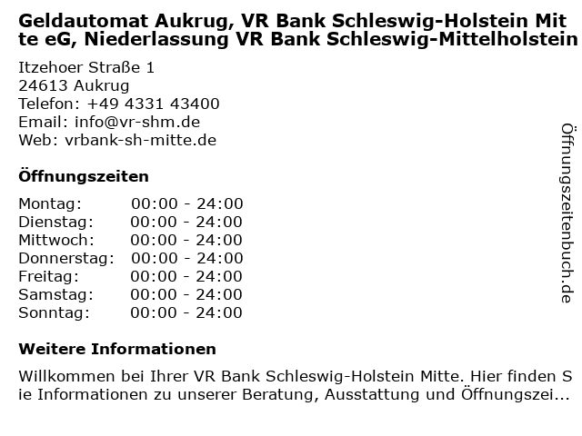 Branchen & Suchbegriffe zu Geldautomat Aukrug, VR Bank Schleswig-Holstein Mitte eG, Niederlassung VR Bank Schleswig-Mittelholstein:aukrug, bank, eg, geldautomat, holstein, mitte, mittelholstein, niederlassung, vr |