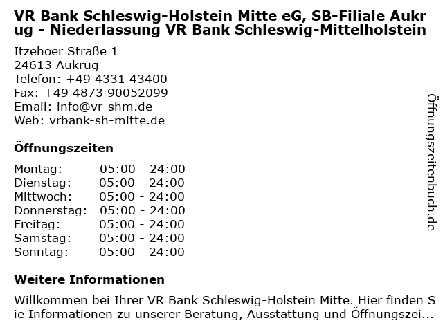 Branchen & Suchbegriffe zu VR Bank Schleswig-Holstein Mitte eG, SB-Filiale Aukrug - Niederlassung VR Bank Schleswig-Mittelholstein:aukrug, bank, eg, holstein, mitte, mittelholstein, niederlassung, sb, vr |