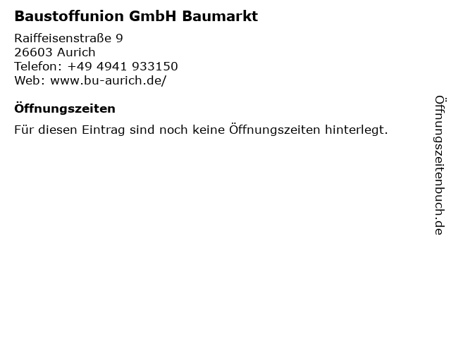 | Öffnungszeiten Baustoffunion GmbH Baumarkt in Aurich anzeigen | |